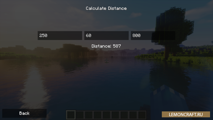 Мод Calculations добавит в игру простой калькулятор имеющий полезные функции для игры майнкрафт. С его помощь вы сможете выполнять основные арифметические действия, высчитывать расстояние до нужной точки по координатам, конвертировать координаты с Нижнего мира.